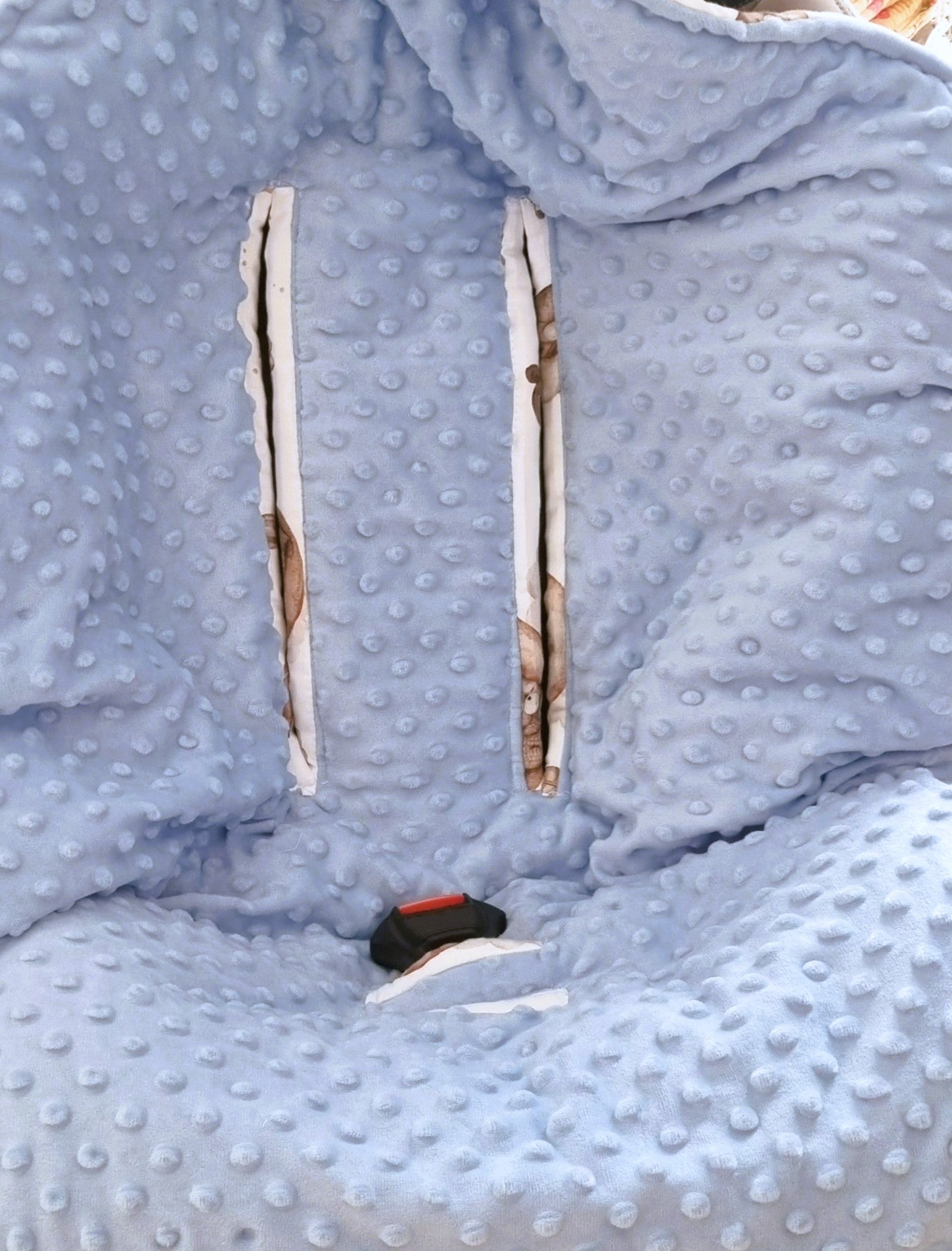 Με 4 οπές ώστε να εφαρμόζουν σε όλα τα καρότσια & τα καθισματάκια αυτοκινήτου, κλείσιμο με Velcro που βοηθάει να τυλίξετε το μωράκι σας με άνεση & ασφάλεια σε πολλές θέσεις, ενώ δημιουργείτε στο κεφαλάκι του μια μικρή κουκούλα ώστε να το προστατεύει από το κρύο.