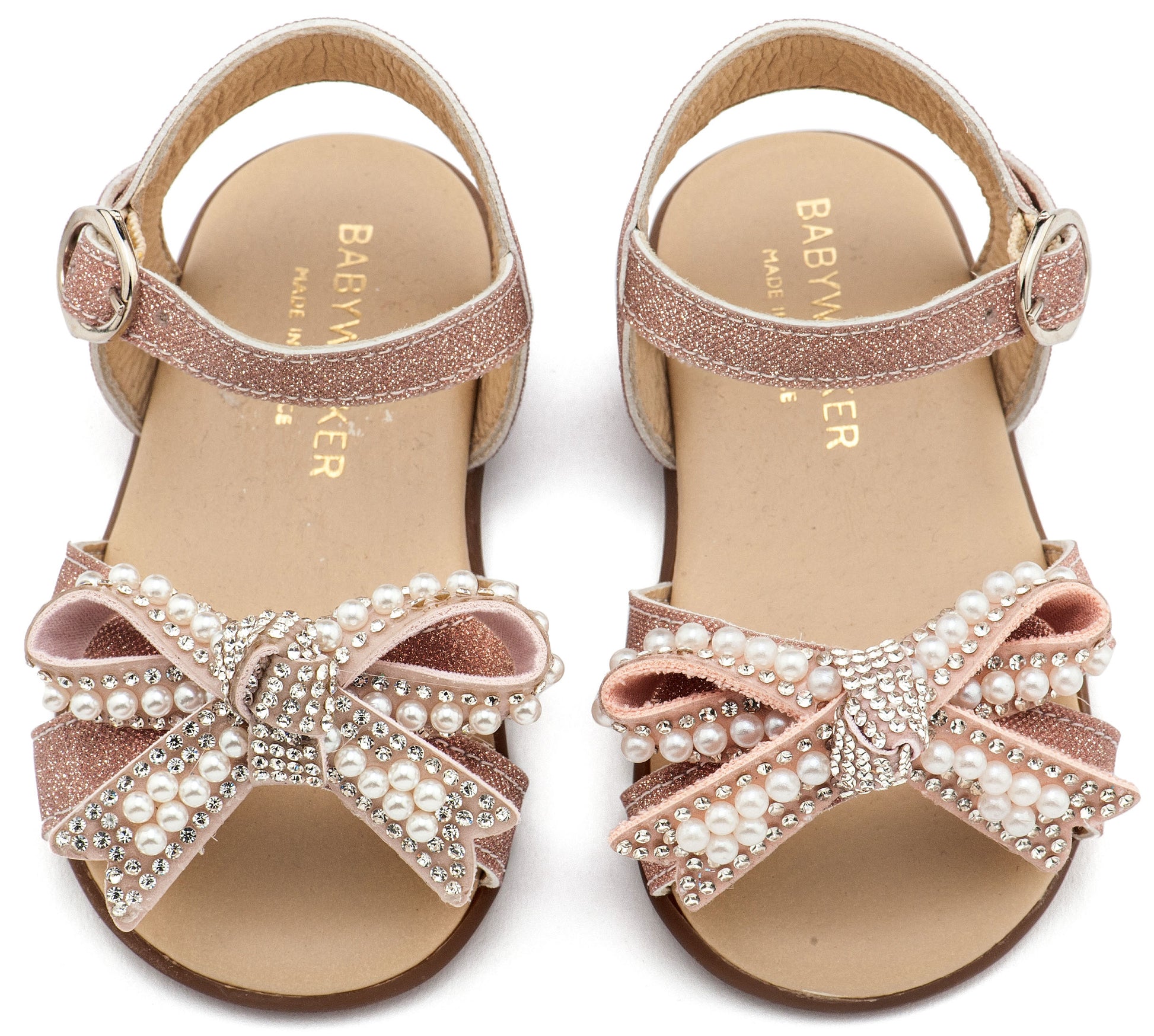 Πέδιλο Διακοσμημένο με Φιόγκο απο Πέρλες Ροζ Αντικέ