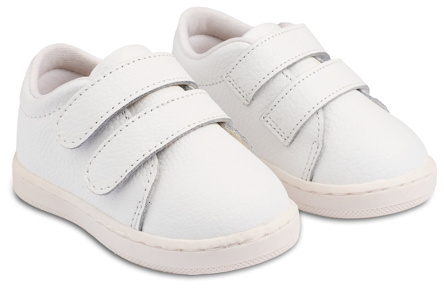 Δερμάτινο Μονόχρωμο Sneakers Διπλή Μπαρέτα Χρατς σε Λευκό Χρώμα